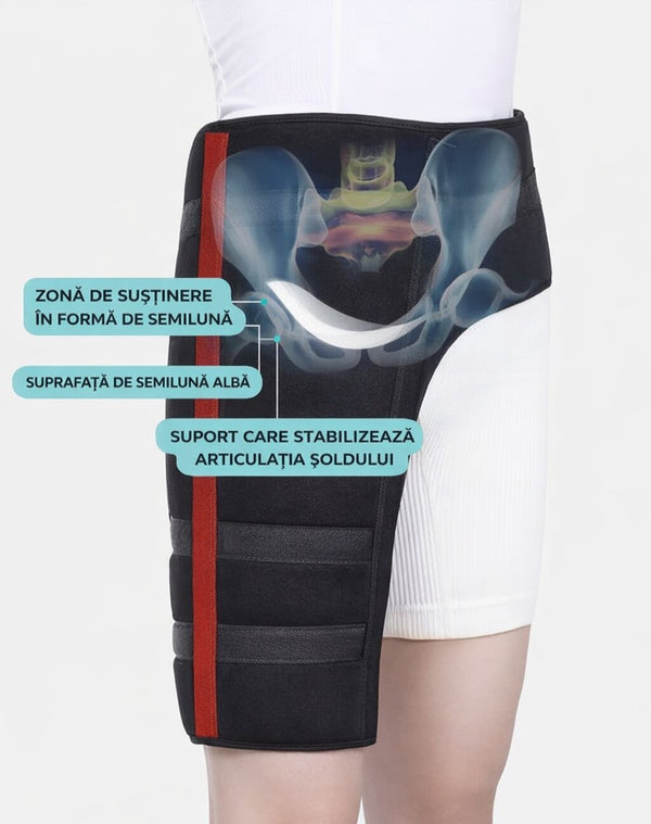 Centura 3 în 1 stabilizează articulația șoldului și reduce presiunea în timpul mersului sau activităților zilnice.