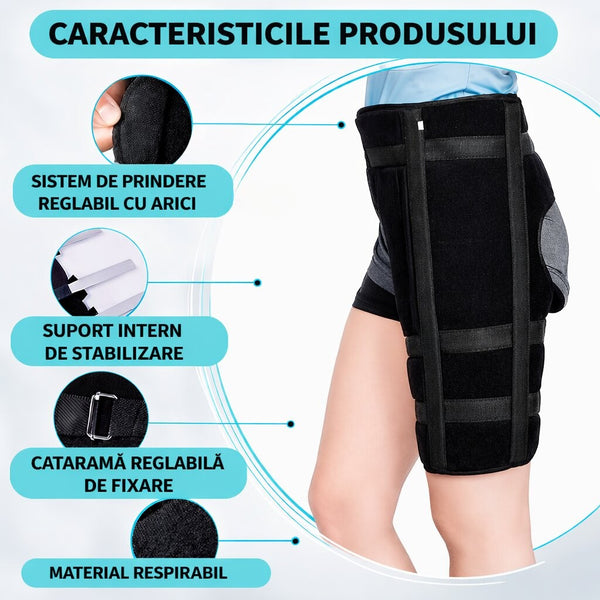 Sistemul reglabil permite fixarea fermă pe șold și coapsă, oferind stabilitate mai bună și mai mult control la fiecare pas.